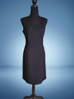 The power of simplicity meets dark sophistication in this vintage Paradox black sheath dress. With its sculpted tailoring, modest scoop neckline, and knee-skimming hem, this piece captures the essence of the late-90s to early-2000s minimalist aesthetic — quiet confidence wrapped in noir elegance.